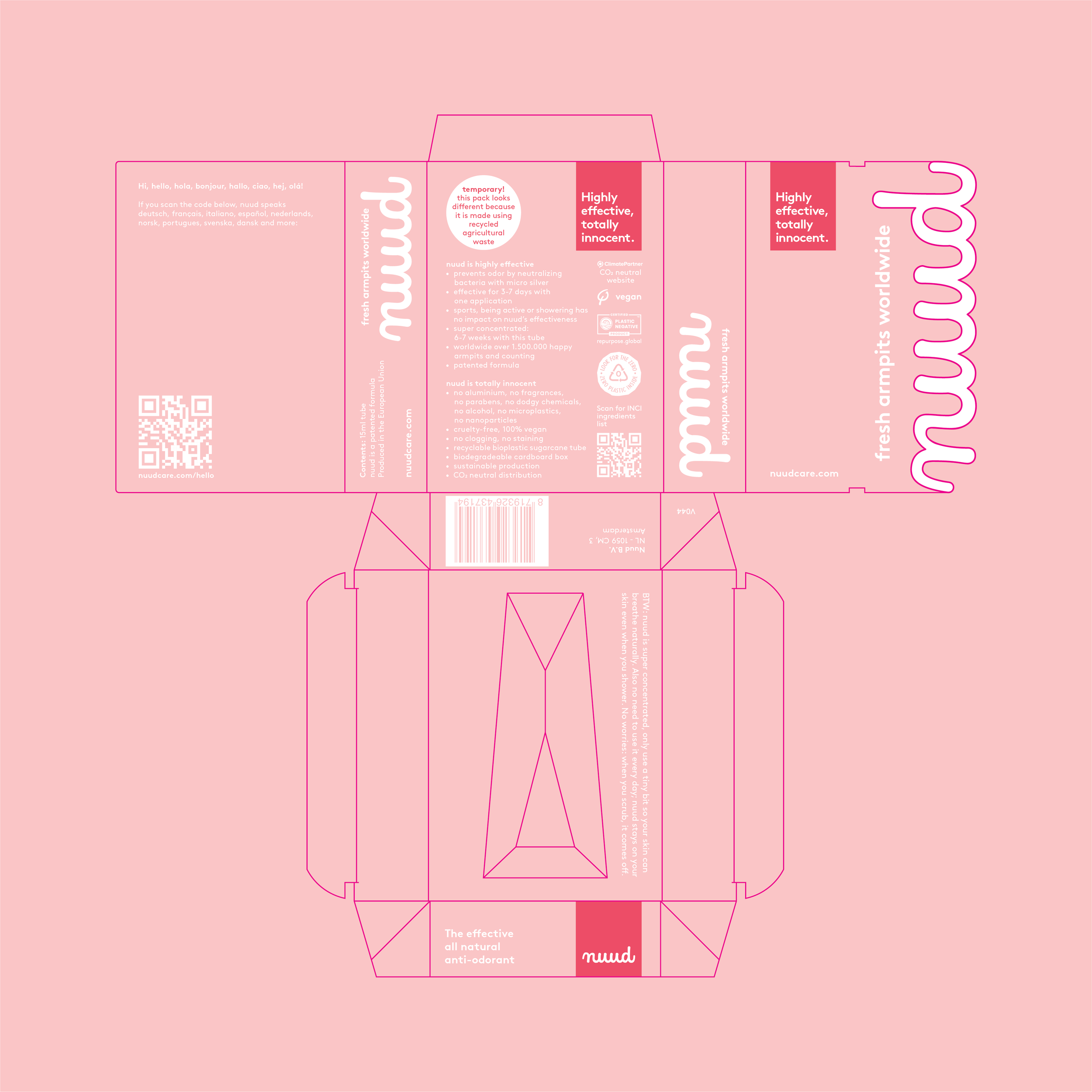Nuud, a pioneering Amsterdam-based “anti-odorant” startup, is redefining the deodorant industry with its revolutionary formula and environmentally conscious ethos. In 2021, I joined the team as the second in house designer, managing the full spectrum of Nuud’s creative output — from advertising to packaging. As the brand scaled globally and expanded retail channels, I played a pivotal role in refining its cohesive identity and creative direction.